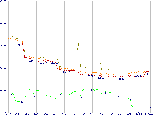 | Athlon XP 3000+ (2.17GHz) リテールパッケージの価格推移 |