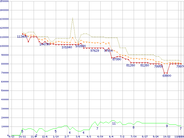 | Xeon 3.2GHz /L3 1MB(FSB533) リテールパッケージの価格推移 |