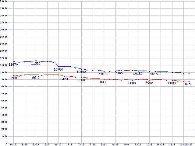 | [↑前グラフ]: | Barracuda 7200.7 Plus (7200rpm,UltraATA/100,8MB,100GB/Platter,FDB)の最安値推移 |