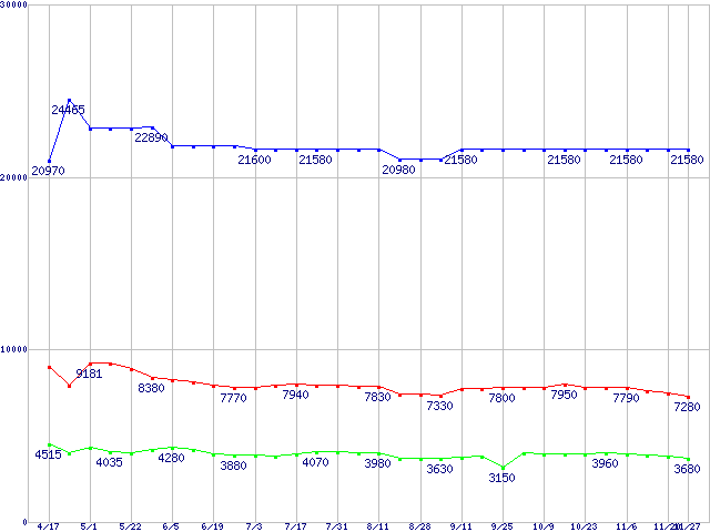 | [↑前グラフ]: | PC2700(DDR333) DDR SDRAM DIMM ECC対応 Registeredタイプの最安値推移 |