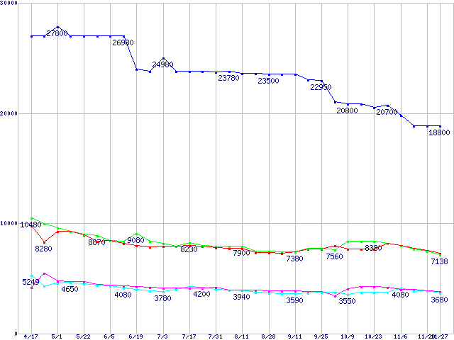 | PC3200(DDR400) DDR SDRAM DIMMの最安値推移 |