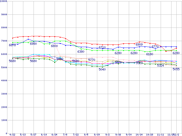 | [↓次グラフ]: | HDD 80GB~100GB未満の最安値推移 |