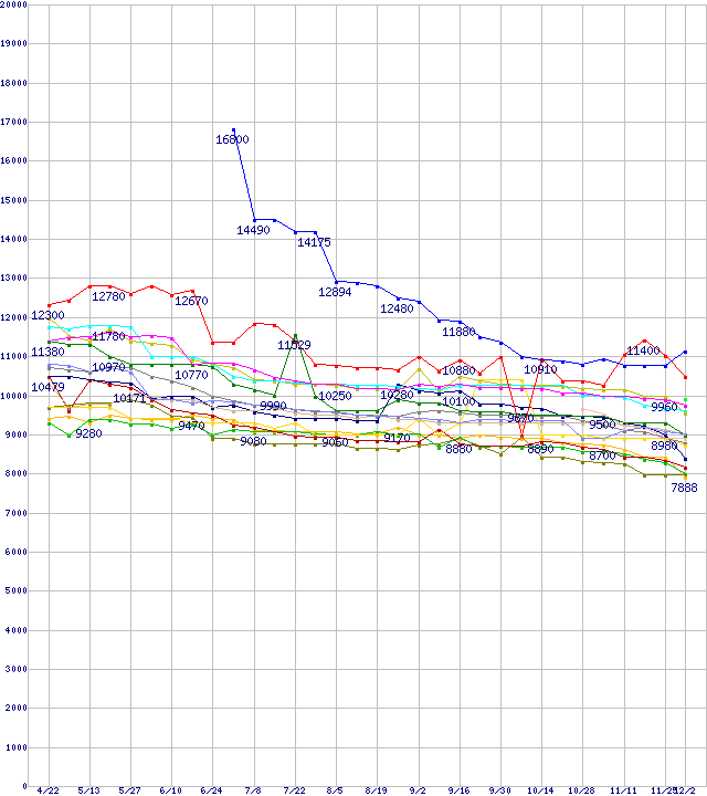 | [↑前グラフ]: | HDD 100~160GB未満の最安値推移 |