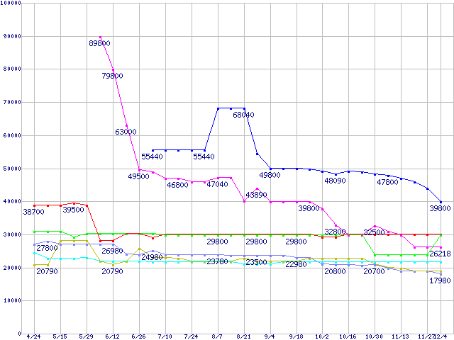 | [↑前グラフ]: | メモリ主要製品の最安値推移 |