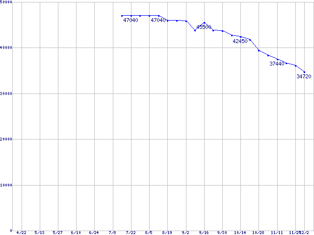 | [↑前グラフ]: | Deskstar 7K250 (7200rpm,SerialATA/150,FDB)の最安値推移 |
