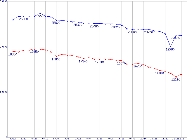 | [↑前グラフ]: | DiamondMax Plus 8 (7200rpm,2MB,UltraATA/133,FDB)の最安値推移 |