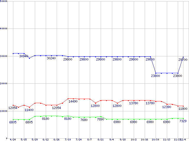 | ※製品名をクリックすると個別のグラフを表示します ※点線部は販売店が確認できなかった、または調査データがないことを示します | |