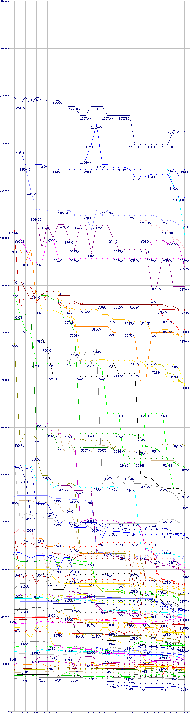 ※製品名をクリックすると個別のグラフを表示します ※点線部は販売店が確認できなかった、または調査データがないことを示します |