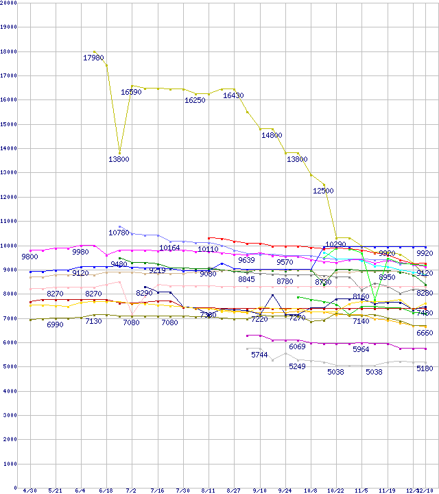 CPU主要製品(最安値1万円~2万円未満)の最安値推移
