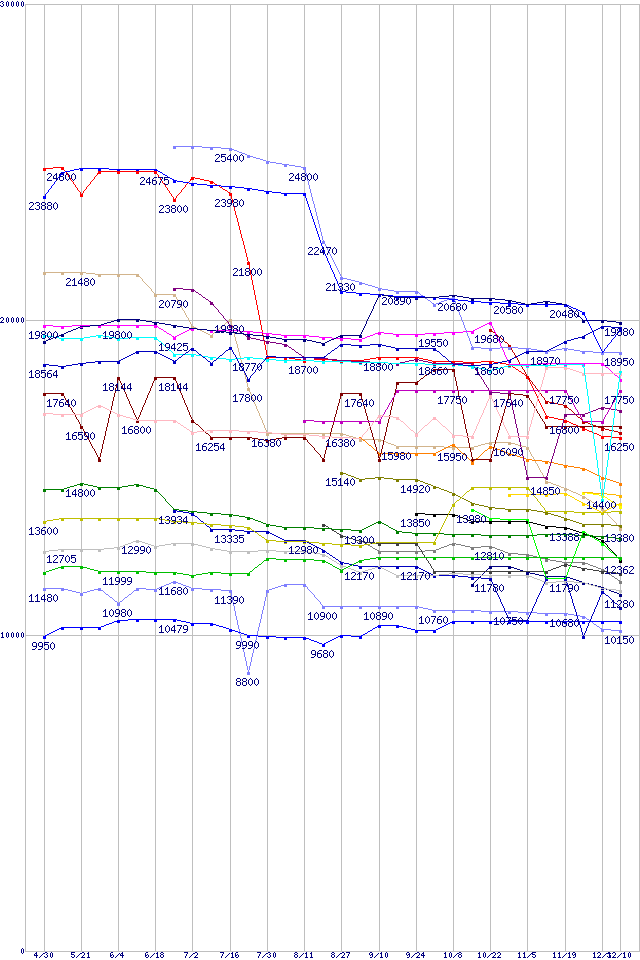 CPU主要製品(最安値2万円~3万円未満)の最安値推移