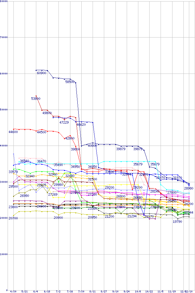CPU主要製品(最安値1万円~2万円未満)の最安値推移