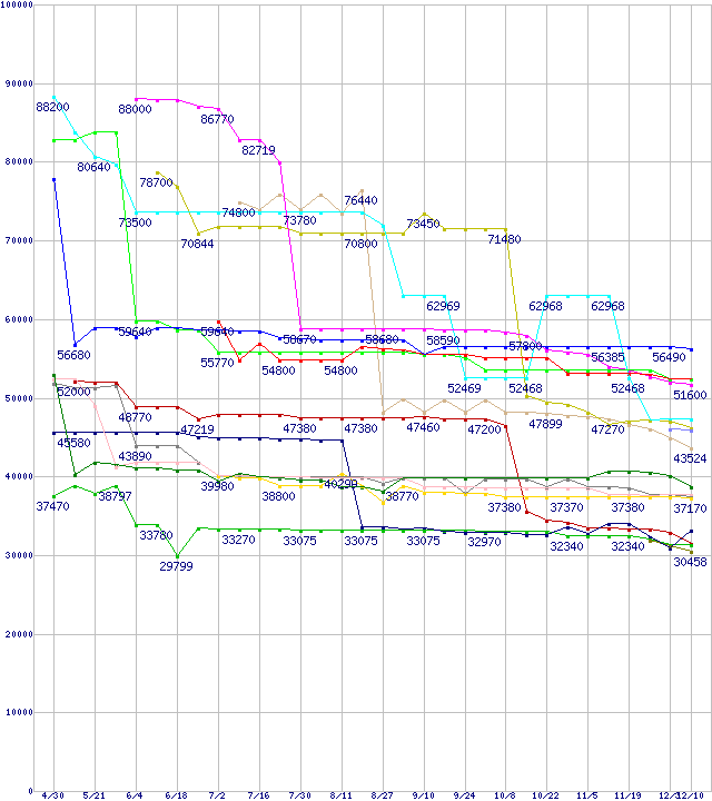| [↓次グラフ]: | CPU主要製品(最安値6万円以上)の最安値推移 |
