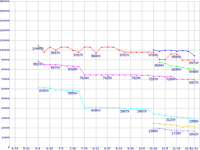 | [↑前グラフ]: | CPU主要製品(最安値6万円以上)の最安値推移 |