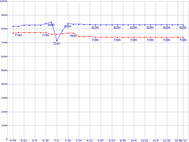 | [↑前グラフ]: | Socket 754・FSB 800MHzの最安値推移 |