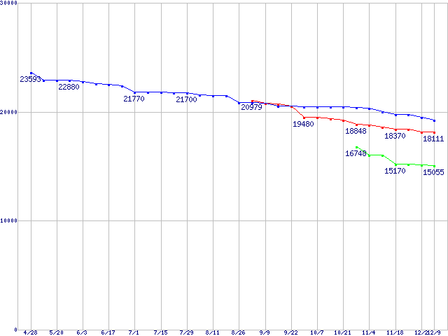 | [↓次グラフ]: | HDD主要製品(最安値2万円以上)の最安値推移 |