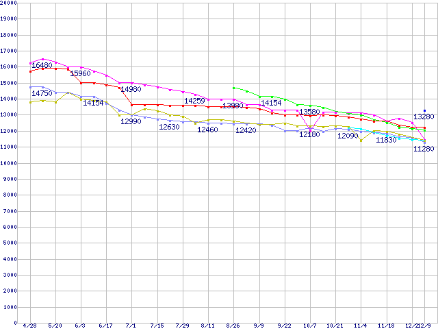 | ※製品名をクリックすると個別のグラフを表示します ※点線部は販売店が確認できなかった、または調査データがないことを示します | |