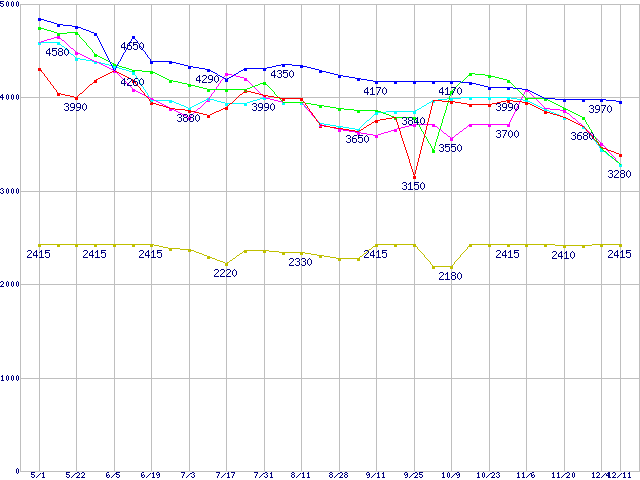 | ※製品名をクリックすると個別のグラフを表示します ※点線部は販売店が確認できなかった、または調査データがないことを示します | |