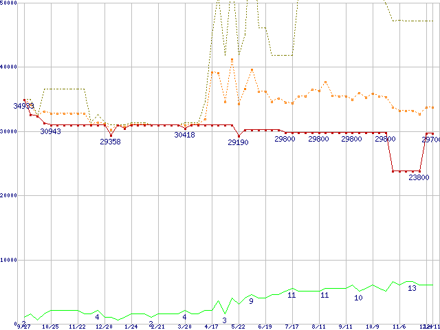 | PC2700 DDR SDRAM 1GB(CL2.5) ECC Registeredの価格推移 |