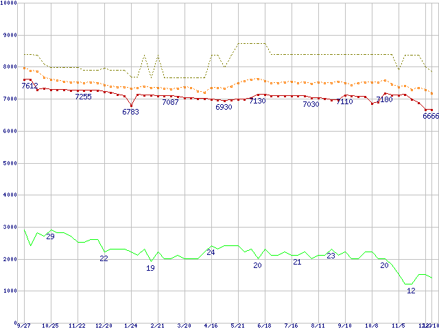 | Celeron 2GHz リテールパッケージの価格推移 |