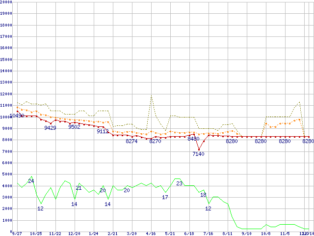 | Athlon XP 2400+ (2GHz) リテールパッケージの価格推移 |