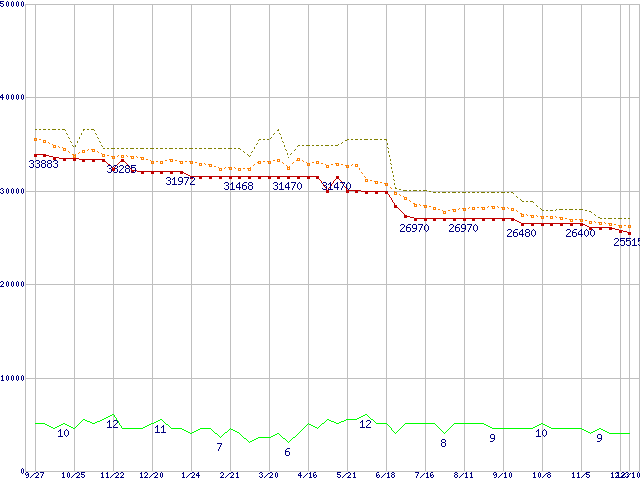 | Xeon 2.66GHz(FSB533) リテールパッケージの価格推移 |