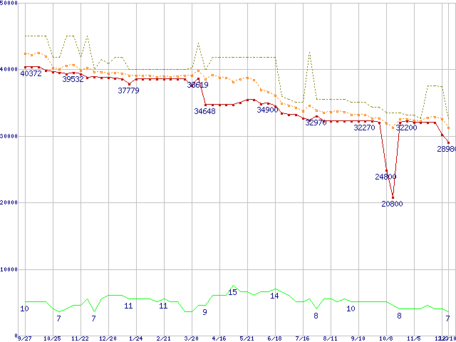 | Xeon 2.80GHz(FSB533) リテールパッケージの価格推移 |