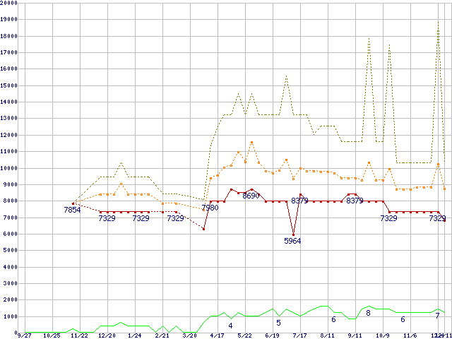 | PC3200 DDR SDRAM 256MB(CL3) ECC Registeredの価格推移 |