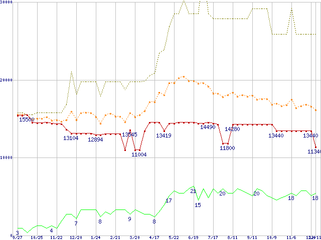 | PC3200 DDR SDRAM 512MB(CL3) ECC Registeredの価格推移 |