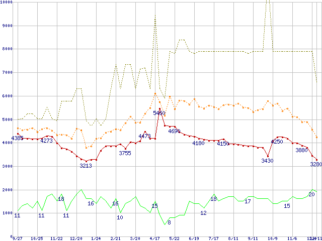 | PC3200 DDR SDRAM 256MB(CL2.5)の価格推移 |