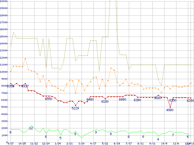| PC4000 DDR SDRAM 256MBの価格推移 |