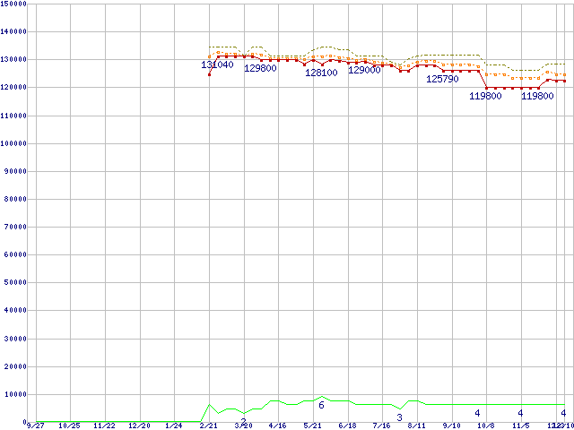 | Xeon 3.2GHz /L3 2MB(FSB533) リテールパッケージの価格推移 |