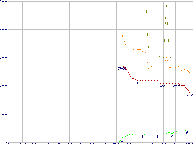 | PC2 3200 DDR2 SDRAM 512MB ECC Registeredの価格推移 |