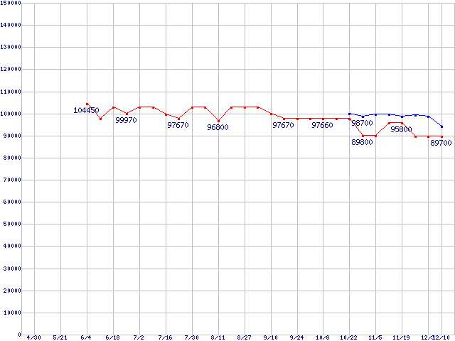 | [↑前グラフ]: | mPGA479M (Micro-FCPGA ,FSB 400MHz,L2 512KB,Banias)の最安値推移 |