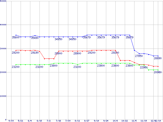 | [↑前グラフ]: | mPGA479M (Micro-FCPGA ,FSB 400MHz,L2 2MB,Dothan)の最安値推移 |