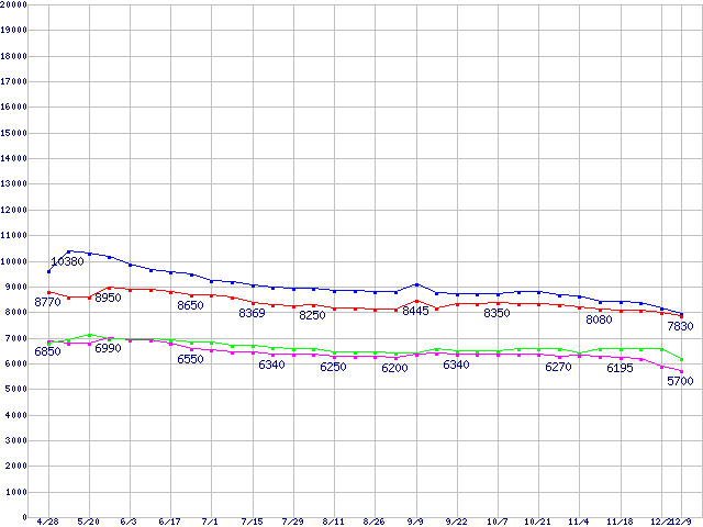 | [↑前グラフ]: | DiamondMax Plus 9 (7200rpm,8MB,UltraATA/133,FDB)の最安値推移 |