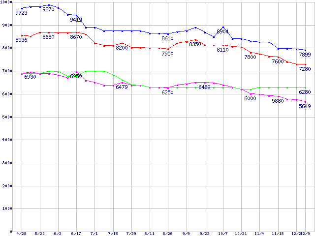 | [↑前グラフ]: | MaXLine II (5400rpm,UltraATA/133,2MB,80GB/Platter,BB)の最安値推移 |