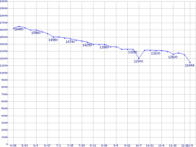 | [↑前グラフ]: | Barracuda 7200.7 SATA II (7200rpm,SerialATA II,8MB,80GB/Platter,FDB)の最安値推移 |