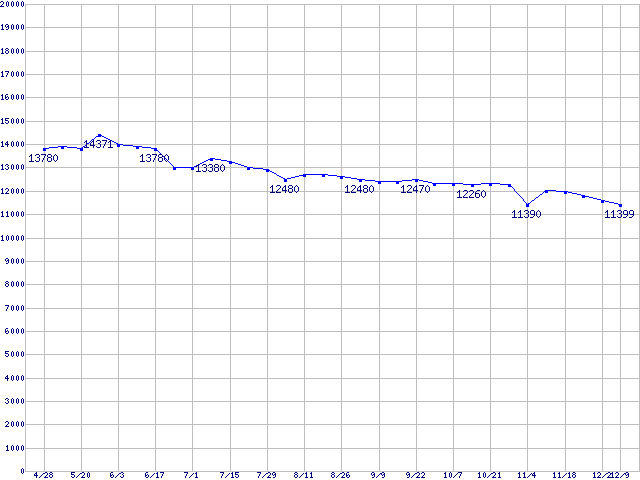 | [↑前グラフ]: | Barracuda 7200.7 (7200rpm,SerialATA/150,8MB,80GB/Platter,FDB)の最安値推移 |