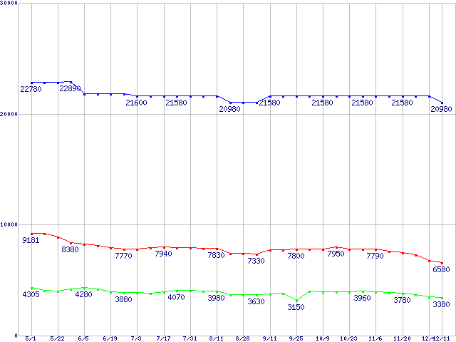 | [↑前グラフ]: | PC2700(DDR333) DDR SDRAM DIMM ECC対応 Registeredタイプの最安値推移 |