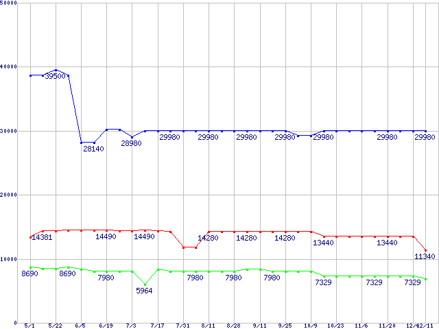 | [↓次グラフ]: | PC4000(DDR500) DDR SDRAM DIMMの最安値推移 |