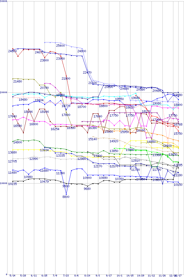 CPU主要製品(最安値2万円~3万円未満)の最安値推移
