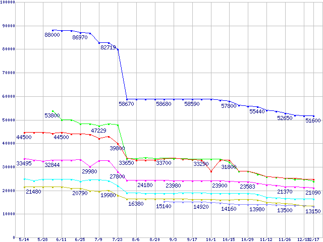| [↑前グラフ]: | Socket 940・FSB 800MHzの最安値推移 |