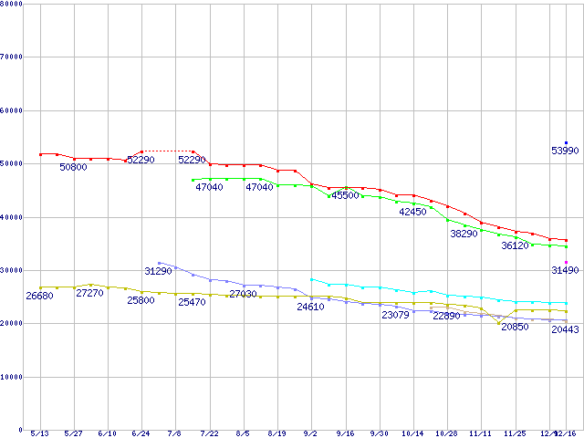 | [↑前グラフ]: | HDD 250~300GB未満の最安値推移 |