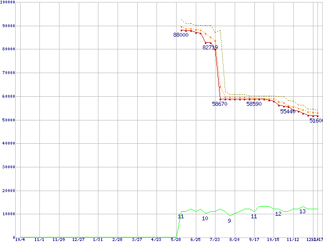 | Athlon 64 3700+(2.4GHz,L2 1MB) リテールパッケージの価格推移 |