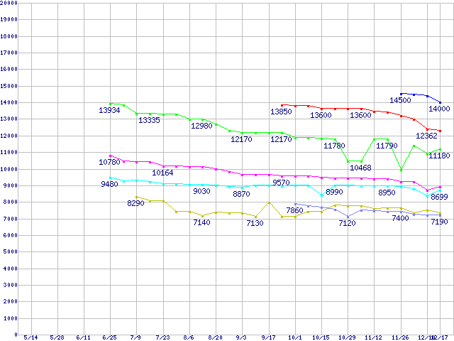 | [↑前グラフ]: | LGA 775 (FC-LGA42,533MHz,L2 256KB,Prescott,NX bit対応)の最安値推移 |