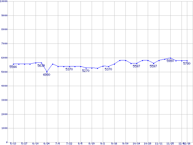 | [↑前グラフ]: | Barracuda 5400.1 (5400rpm,UltraATA/100,2MB,FDB)の最安値推移 |