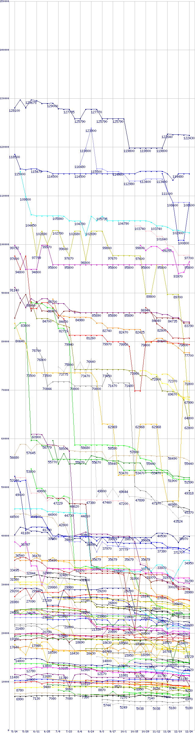 ※製品名をクリックすると個別のグラフを表示します ※点線部は販売店が確認できなかった、または調査データがないことを示します |
