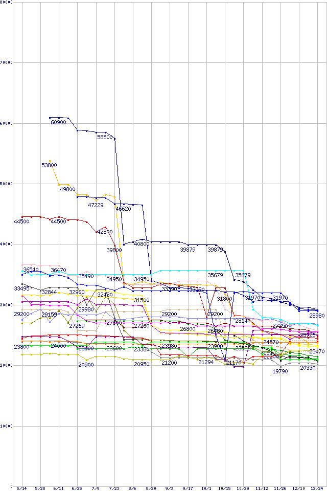 CPU主要製品(最安値2万円~3万円未満)の最安値推移
