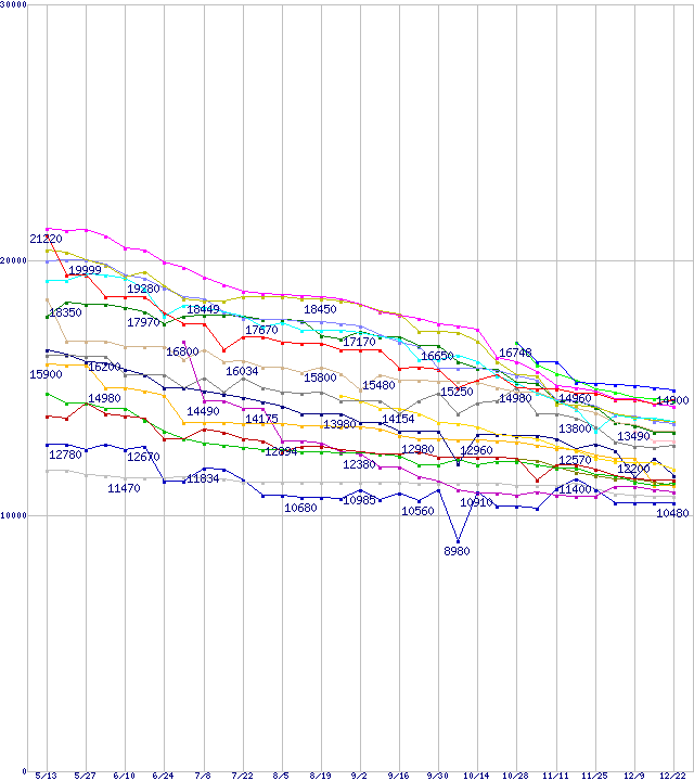 HDD主要製品(最安値1万5千円~2万円未満)の最安値推移