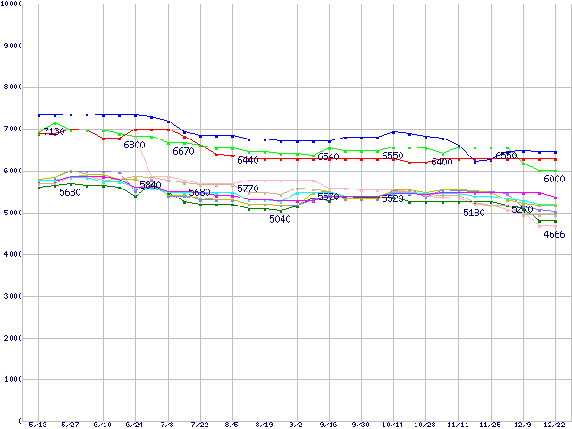 | [↑前グラフ]: | HDD 20GB~30GB未満の最安値推移 |